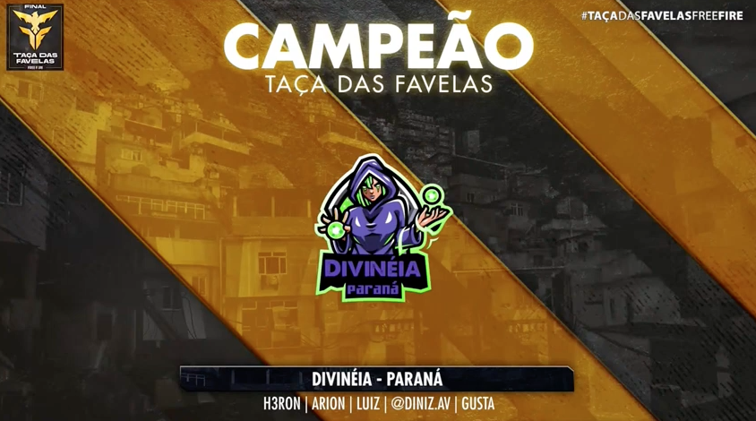 A equipe de Divinéia, da favela do Paraná, foi a grande campeã da Taça das Favelas Free Fire, campeonato organizado pela Central Única das Favelas (CUFA) e pela Garena, com o apoio da Globo.